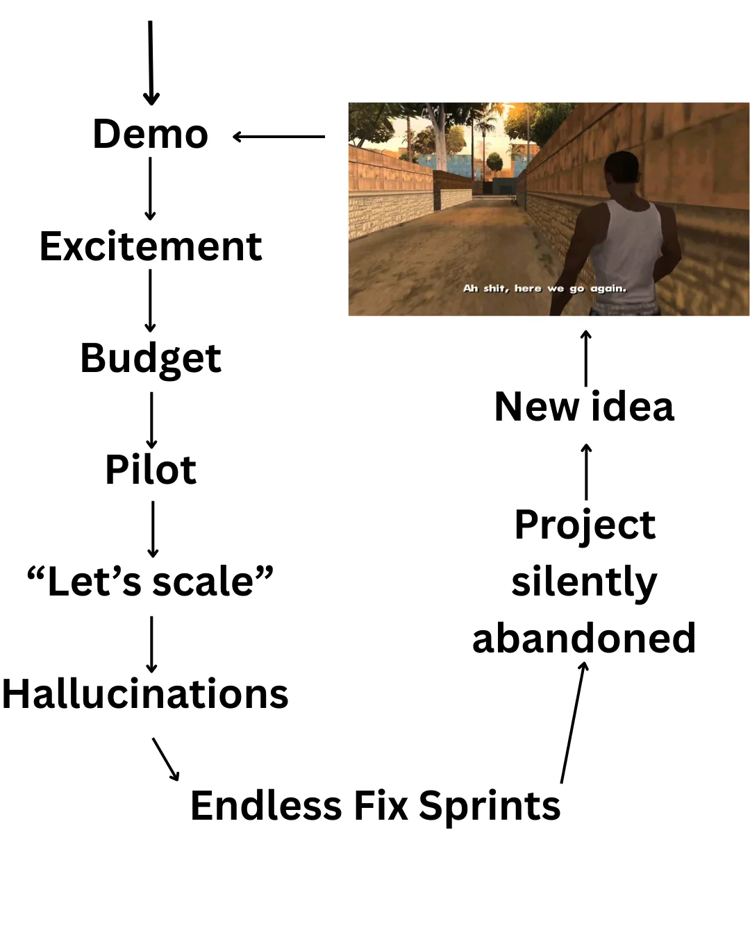 Nobody kills failing AI PoCs. They die in status meetings. “We’re working on stability improvements.” “We need more testing before broader rollout.” “Let’s revisit the timeline next quarter.” Twelve months later, the pilot is still a pilot. After a crash landing. One day, the key stakeholders have a more important meeting. Then they reallocate “resources” to more urgent initiatives. Eventually, nobody remembers, nobody cares, and the company moves on to new ideas.